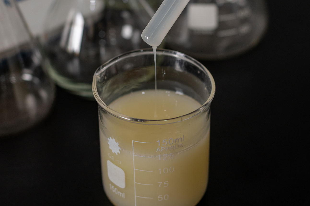 防水彈性乳液外觀為乳白色乳液狀,其主要成分為自交聯(lián)丙烯酸酯共聚型樹脂,屬于水性乳液,具有低粘度、高固含量的特點(diǎn)。